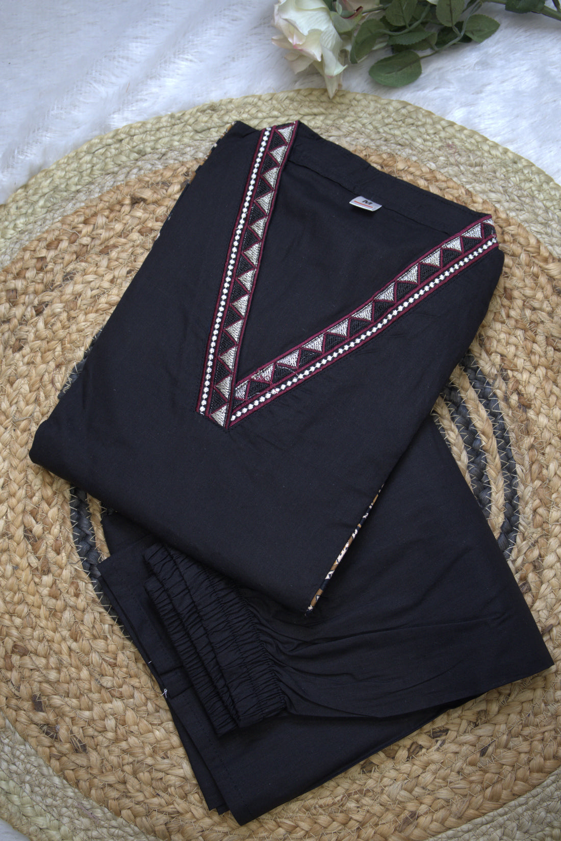 Kurti Color: Jet black / classic black Style: Long straight-cut kurti Neckline: V-neck adorned with...