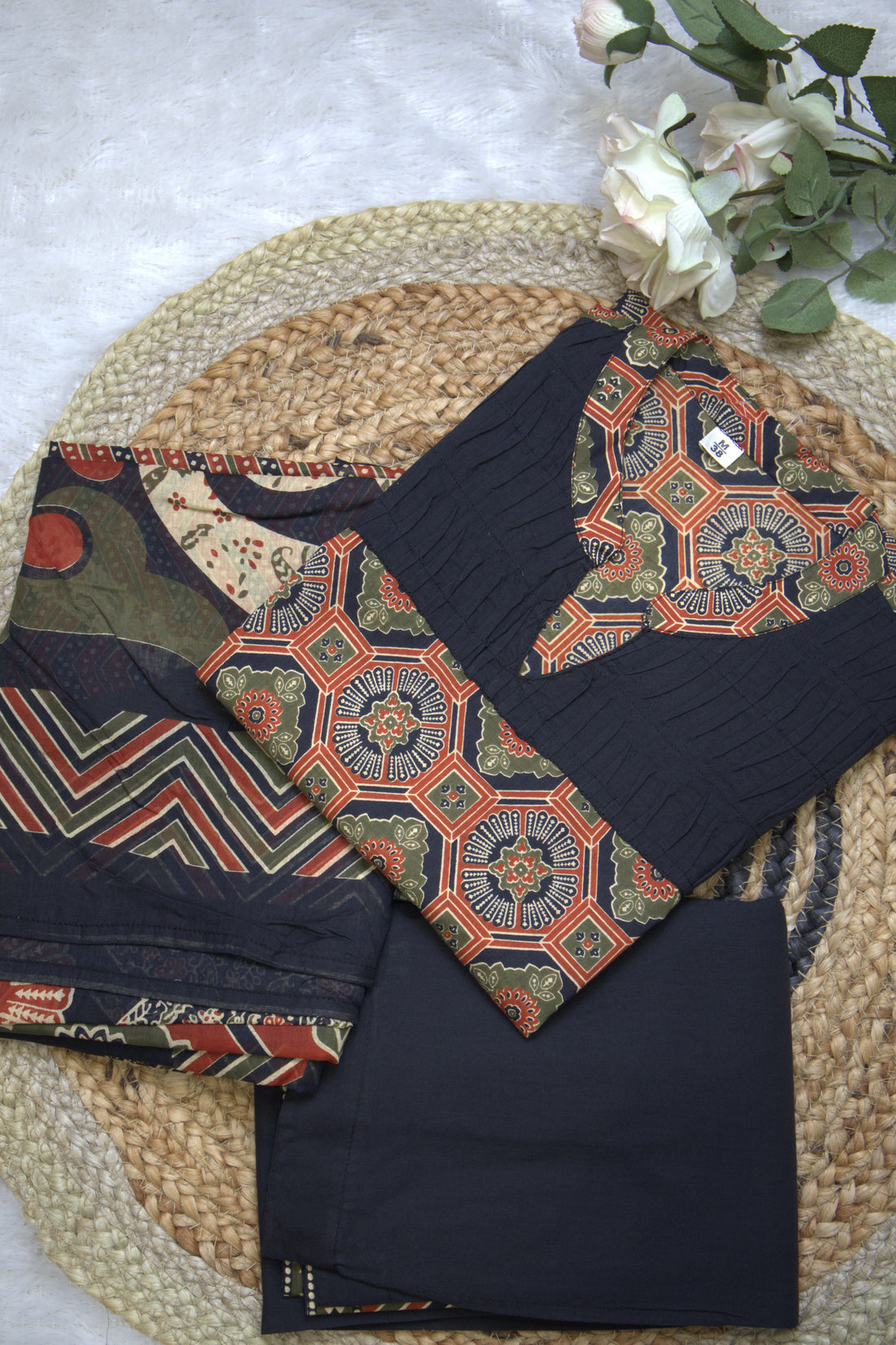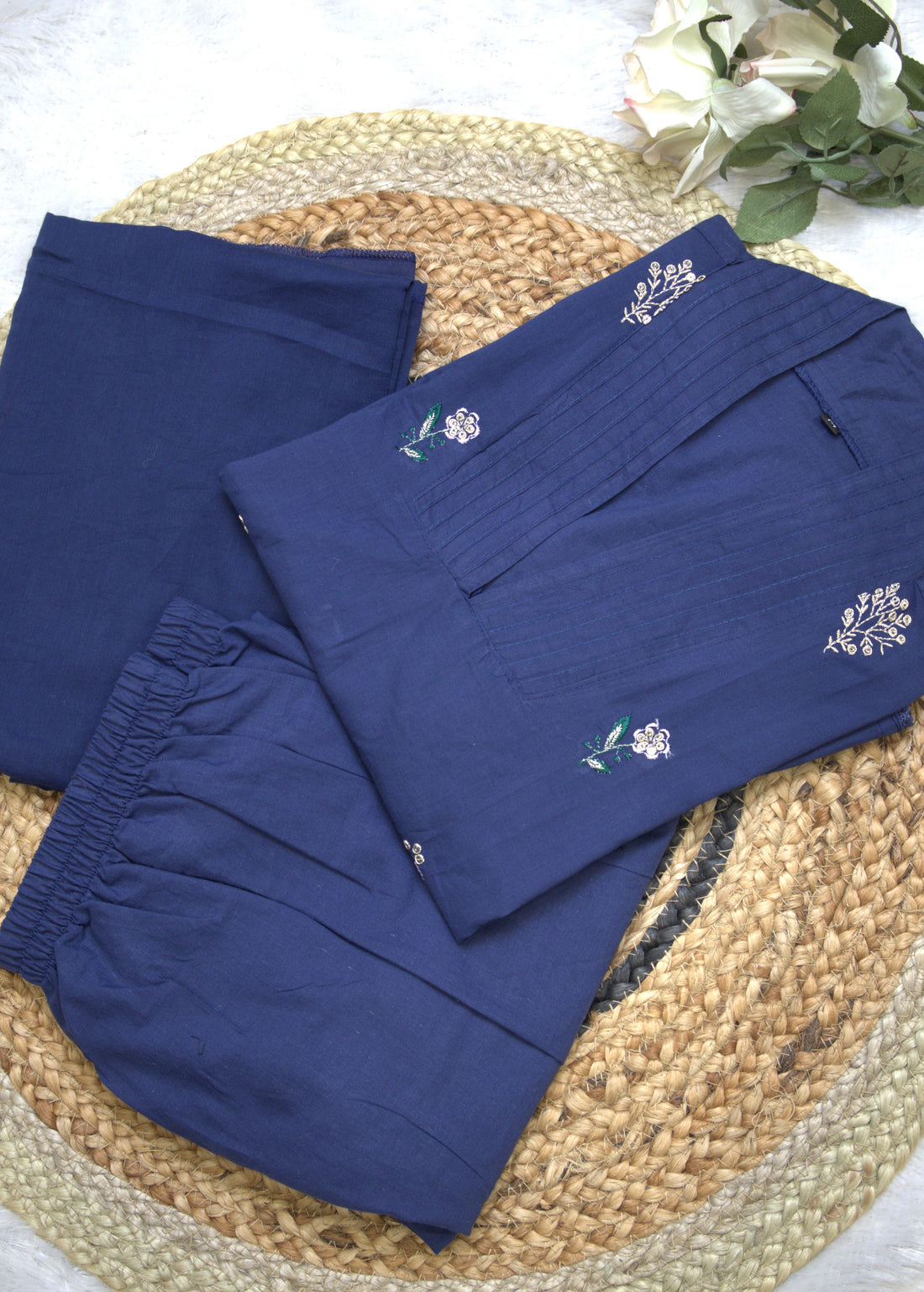 ⭐ Kurti Color: Deep navy blue Fabric: Appears to be lightweight cotton or a soft...