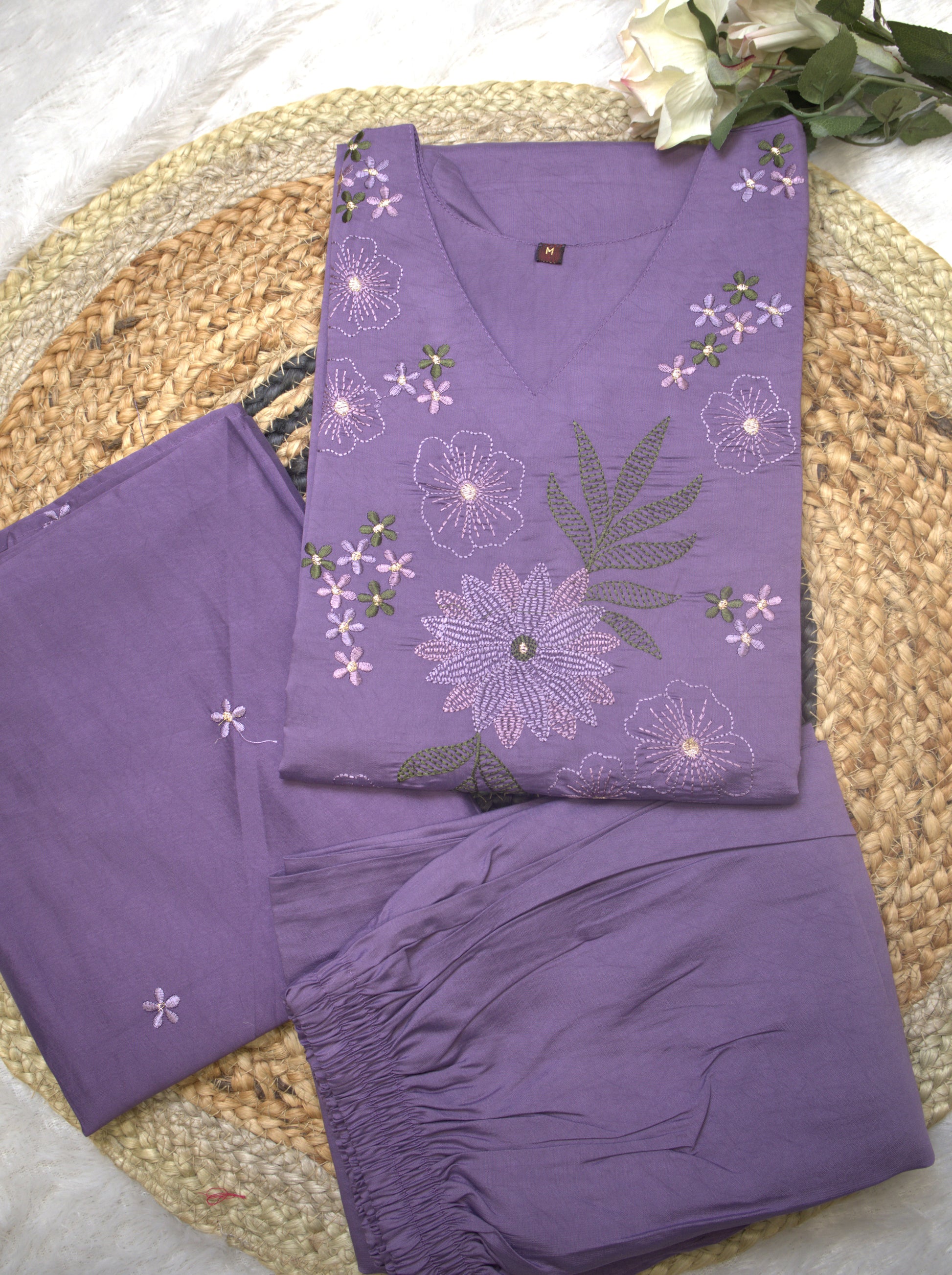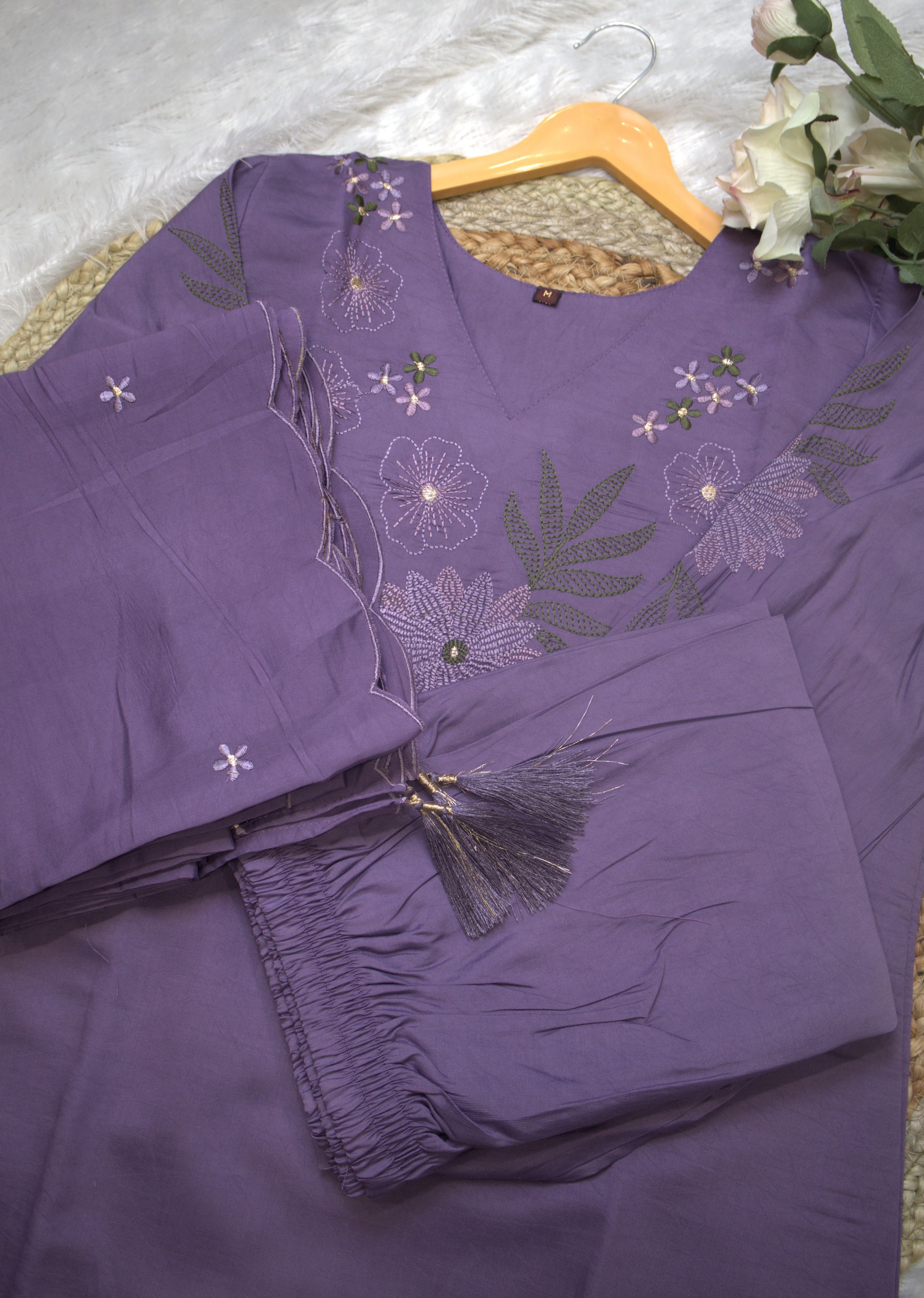 Elevate your everyday style with this exquisitely crafted purple embroidered dress, designed for women who love elegance wrapped in comfort.