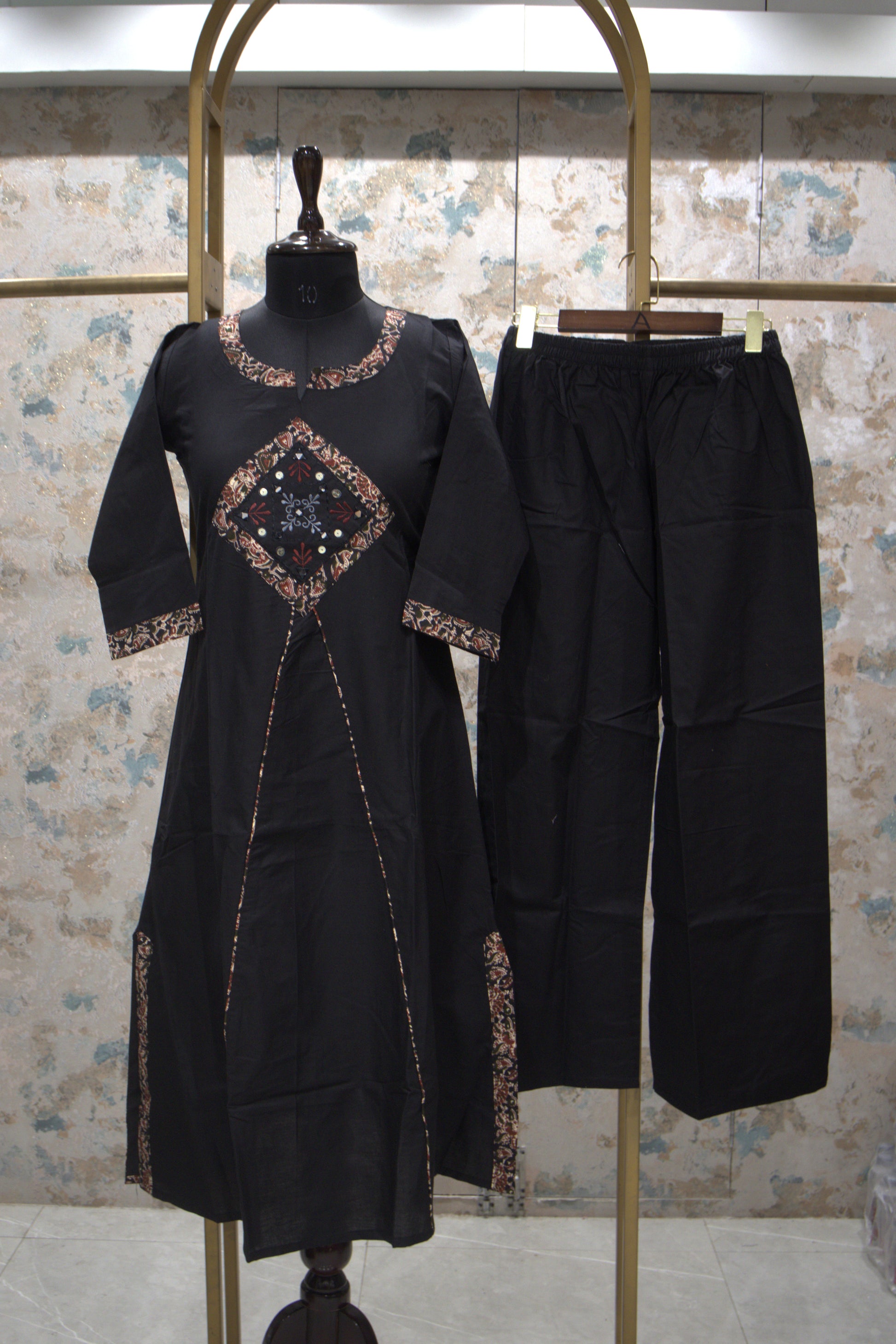 This elegant kurti palazzo set for women is thoughtfully designed to offer a perfect blend of traditional charm and modern comfort, making it ideal for daily wear, office wear, and light festive occasions. Crafted from premium-quality, breathable fabric, the kurti features a graceful silhouette with contrast detailing and a beautifully embroidered yoke that adds a refined ethnic touch. The matching palazzo pants are designed for all-day comfort with a relaxed fit, ensuring ease of movement and a flattering look. Perfect for shoppers looking for women’s ethnic wear online, kurti palazzo sets, Indian traditional outfits, and comfortable everyday ethnic clothing, this versatile ensemble is easy to style and suitable for all seasons. A timeless addition to any wardrobe, it delivers elegance, comfort, and effortless style for the modern Indian woman.